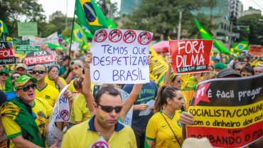 Internacionales | El epicentro fue en San Pablo, donde hubo unos 275.000 asistentes, aunque hubo réplicas en 25 estados del país. Hace un mes, tuvo lugar una convocatoria similar, aunque en esta ocasión hubo menor participación. Miles de brasileños volvieron hoy a las calles para protestar en casi un centenar de ciudades del país contra la corrupción y para exigir la salida de la presidente Dilma Rousseff, cuya popularidad está en mínimos históricos pese a que sólo completó 102 días de su segundo mandato de cuatro años. Las protestas fueron convocadas en las redes sociales por movimientos que se dicen independientes de los partidos políticos y que el 15 de marzo consiguieron congregar a cerca de dos millones de manifestantes en decenas de ciudades.