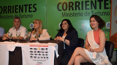 Interior | Este fin de semana del 3 al 5 de noviembre Bella Vista se viste de fiesta pata vivir su 14 Concurso de pesca variada embarcada con devolución. Por ello, hoy por la mañana se realizó una conferencia de prensa en el salón Pinin Palma del Ministerio de Turismo de Corrientes en el que participó el Intendente de Bella Vista, Walter Andrés Chávez; la Ministra de Turismo de Corrientes, Arq. Inés Presman; la Directora de gestión turística, TT Mirian Mosna; el Presidente de la comisión organizadora Andrés Alberto Sánchez; y la 1era princesa de la pesca variada embarcada con devolución 2016 Wanda Feyen, quien estuvo en representación de la Reina.