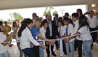 Interior | El gobernador Ricardo Colombi junto al diputado nacional Gustavo Valdés, inauguraron el edificio completamente a nuevo de la Escuela Secundaria “Juan Pablo II” de Monte Caseros, que a partir de ahora cuenta con lugar propio. También se aprovechó la oportunidad para firmar entre el Gobierno provincial y el intendente anfitrión, Miguel Olivieri, el contrato de obra para una Línea de Media Tensión (LMT) de 33 kw y una Estación Transformadora (ET) que alimentará directamente a la empresa TN and Platex, que genera gran cantidad de mano obra en la localidad.