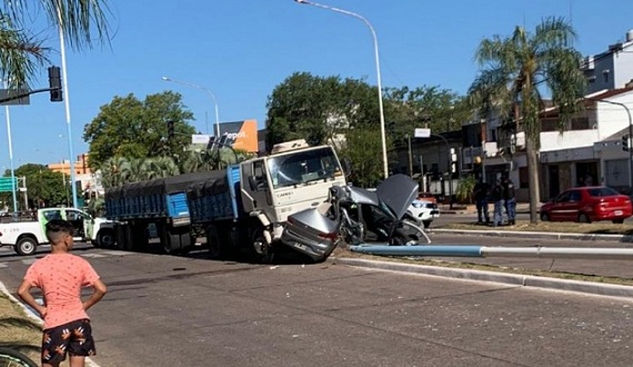 Policiales | El camión se llevó por delante un automóvil, que derribó una jirafa del alumbrado público. El conductor sobrevivió de manera milagrosa. En otra múltiple colisión ocurrida a metros del control de Laguna Brava murió un motociclista de 33 años.