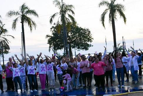 Información General | Este miércoles, se realizó una caminata por el día de la Lucha Contra el Cáncer de Mama y la concientización de esa problemática, organizada por el Ministerio de Salud de la provincia en la Costanera Sur en 3 de Abril y Costanera para culminar con un acto de cierre en el Paseo Arazaty. En la oportunidad, se repartieron folletos e invitaciones para chequeos en los stands institucionales, se realizaron clases de Zumba a cargo de profesores de Educación física entre otras actividades.