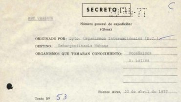 Internacionales | Documentos desclasificados por la propia Cancillería argentina ilustran el intercambio de favores diplomáticos entre ambos regímenes en organismos internacionales y en plena etapa de la represión ilegal. En el año 1977, Cuba pidió al gobierno de facto de la Argentina, presidido por Jorge Rafael Videla, apoyo en la ONU para poder ingresar al Consejo Ejecutivo de la Organización Mundial de la Salud (OMS). La dictadura militar autorizó la operación y solicitó en contrapartida el voto de La Habana para la reelección de Argentina en el Consejo Económico y Social de la ONU (ECOSOC). Todo este intercambio quedó registrado en cables secretos.