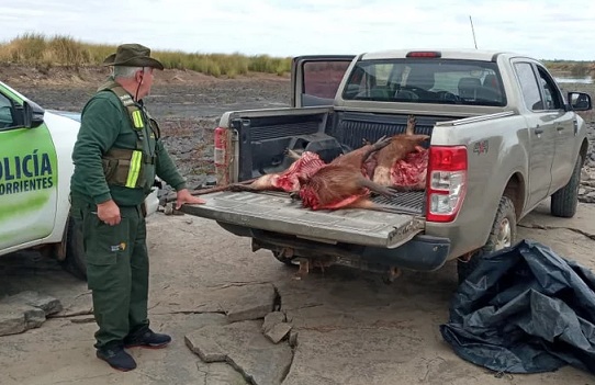 Policiales | En un operativo conjunto entre la Dirección de Flora y Fauna de Mercedes y efectivos del Priar de Paso de los Libres, dos cazadores furtivos fueron detenidos y en su poder se secuestraron siete carpinchos, cuchillos, una piragua y otros elementos utilizados para esa actividad ilegal. El procedimiento se concretó en la tarde de ayer -cerca de las 14- en los márgenes del río Miriñay, y los responsables intentaron darse a la fuga, sin éxito gracias al rápido accionar de las autoridades.