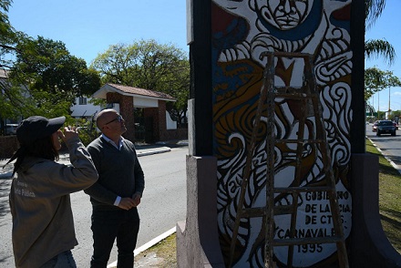 Información General | Se trata de dos tótems ubicados en el parterre este de la avenida Pedro Ferré y estuvo a cargo del Departamento de Arte Público. Formó parte de las actividades organizadas por la Comuna en el marco de la Semana del Comparsero. Las esculturas fueron realizadas por el Grupo Arte Ahora en los ’90.