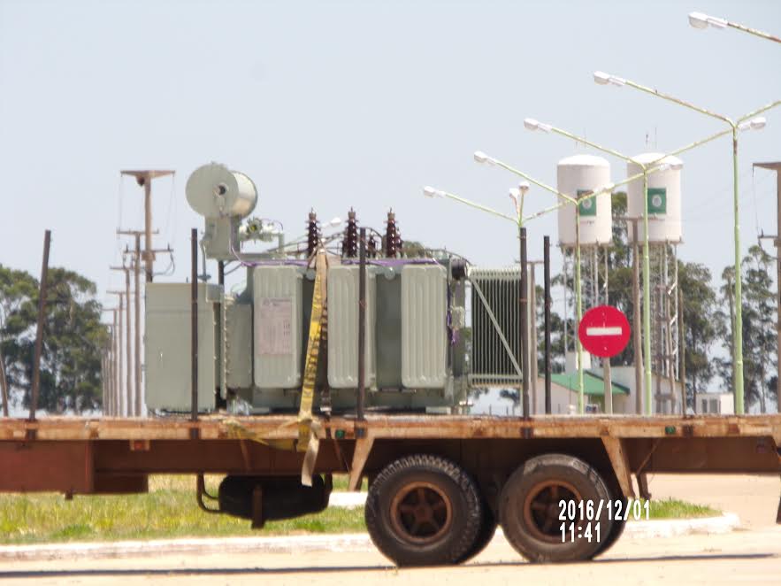 Interior | Finalizadas las obras complementarias, se instalará el nuevo transformador de 2500 Kva que aportará energía directamente al parque forestoindustrial. Con estas obras, Santa Rosa verá mejorada su provisión en un 40 por ciento. Fue recibido por el intendente, Pedro José Maidana; el viceintendente Martin Martínez; el jefe de distrito de la Dpec, Milton Mouriño; el director del parque, Mariano Henner; y la concejal Stella Maris Solís.