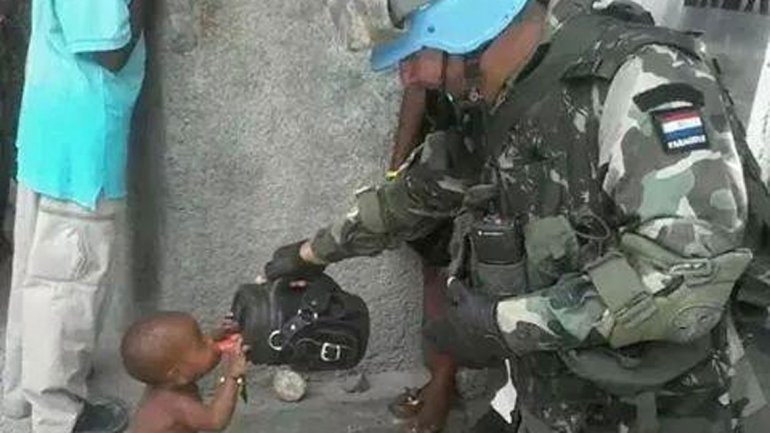 Internacionales | Un suboficial de las fuerzas de la ONU en la isla ha conmocionado las redes sociales con una imagen muy emotiva. La foto de un militar paraguayo, miembro de las Fuerzas de Paz de las Naciones Unidas, dando de beber de su termo de tereré (mate frío) a un niño haitiano despertó la admiración y el respeto de los usuarios de redes sociales. Según informa Última Hora, se trata del suboficial Gustavo Jara Alfonso, oriundo de Concepción, quien se encuentra en misión humanitaria hasta noviembre.