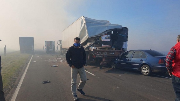 Policiales | Lo que propició el accidente fue la escasa visibilidad generada por una cerrada cortina de humo proveniente de la quema de pastizales que se produce en campos y en la banquina de la Ruta 12. Una persona resultó herida y hubo severos daños materiales.