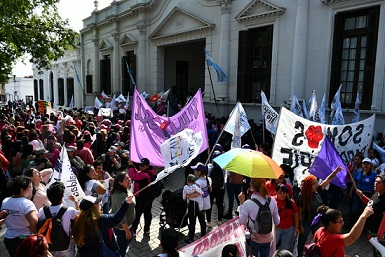 Información General | Esta mañana, en la Plaza 25 de Mayo frente a Casa de Gobierno y la Legislatura, ciudadanas/os se presentaron para apoyar la aprobación de la ley de paridad de género que será tratada hoy en Cámara de Diputados. El proyecto que podría convertirse en ley fue presentado en marzo por el Gobierno provincial.