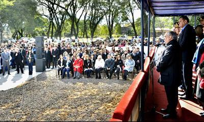 Interior | Lideró el acto de la promesa de lealtad a la bandera. Reiteró que Nación debe fijar como “feriado inamovible” al 17 de agosto. Luego, habilitó las obras de refacción y ampliación de un colegio, como así también firmó dos convenios con Tarabini.