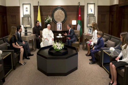 Internacionales | "Es urgente encontrar una solución pacífica a la crisis siria, y una justa solución al conflicto entre israelíes y palestinos", dijo esta mañana tras su llegada a Jordania. Además, reconoció al regente Abdalá II como un "artífice de la paz". Más tarde, ofició una misa frente a una multitud. El itinerario de la gira.