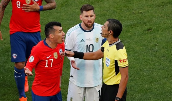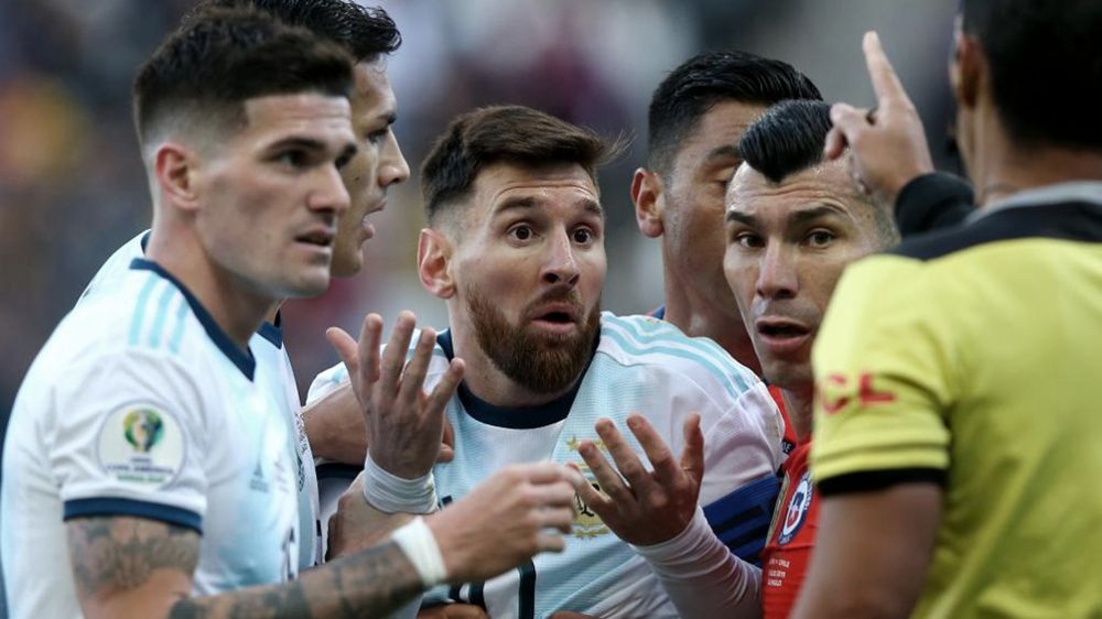 Deportes | Lionel Messi recibió anoche una fecha de suspensión y 1.500 dólares de multa por la expulsión sufrida el sábado 6 de julio en el partido con Chile, por el tercer puesto de la Copa América de Brasil, un par de horas después de que el presidente de la AFA fue despojado de su cargo de representante de la Conmebol ante la FIFA por el ente rector del fútbol sudamericano, ante las críticas vertidas contra ese organismo.