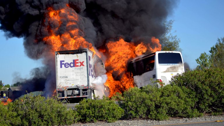 Internacionales | Un camión de correos cruzó el jardín central de una autopista e impactó de frente contra un transporte escolar que llevaba alumnos a visitar una universidad en California. Además hay 34 heridos