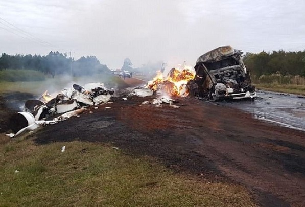 Policiales | El siniestro se produjo ayer en la Ruta Nacional 14, a la altura del kilómetro 681. Dos camiones que transportaban bobinas de papel colisionaron y uno de ellos se prendió fuego. El conductor alcanzó a descender y sólo sufrió heridas leves.