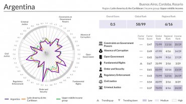 Internacionales | El país se ubicó 83º de 99 naciones participantes en la categoría "Orden y Seguridad" del Índice de Imperio de la Ley. En la tabla general terminó en el puesto 58º. Los principales resultados de Argentina en el Índice de Imperio de la Ley Los principales resultados de Argentina en el Índice de Imperio de la Ley.