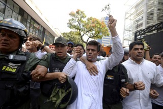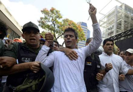 Internacionales | Leopoldo López es señalado por el Gobierno como responsable de las tres muertes en las protestas contra Maduro de los últimos días.Leopoldo López, líder del opositor partido Voluntad Popular y requerido por la justicia venezolana, que lo acusa de la muerte de tres personas en protestas callejeras, se entregó este martes a la Guardia Nacional Bolivariana en una plaza de Caracas en la que se encontraban miles de sus seguidores, constató la AFP.