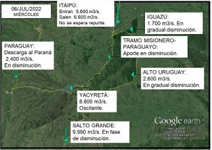 Información General | Para los próximos días se prevé la ocurrencia de eventos precipitantes, de moderados a abundantes, sobre el área de aporte a los tramos medio e inferior del río Uruguay, mientras que para el área de aporte al tramo medio del río Paraná en territorio argentino se esperan lluvias de leves a moderadas, señala el informe del Instituto Nacional del Agua (INA) publicado por el Instituto Correntino del Agua y del Ambiente (ICAA) en su sitio web www.icaa.gov.ar
