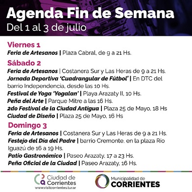 Información General | Un abanico de opciones para disfrutar este fin de semana en la ciudad ofrece la Municipalidad de Corrientes. Todas las propuestas son con acceso libre y gratuito en diferentes zonas de la Capital. Además, habrá paseos gastronómicos y cerveceros.
