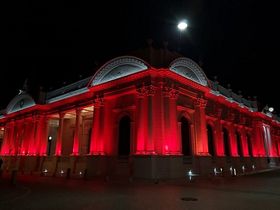 Información General | En horas de la tarde de este martes, la Casa de Gobierno se vio iluminada en su fachada, con luces de color rojo en alusión al Día Mundial del Donante de Sangre que se celebra este 14 de junio.