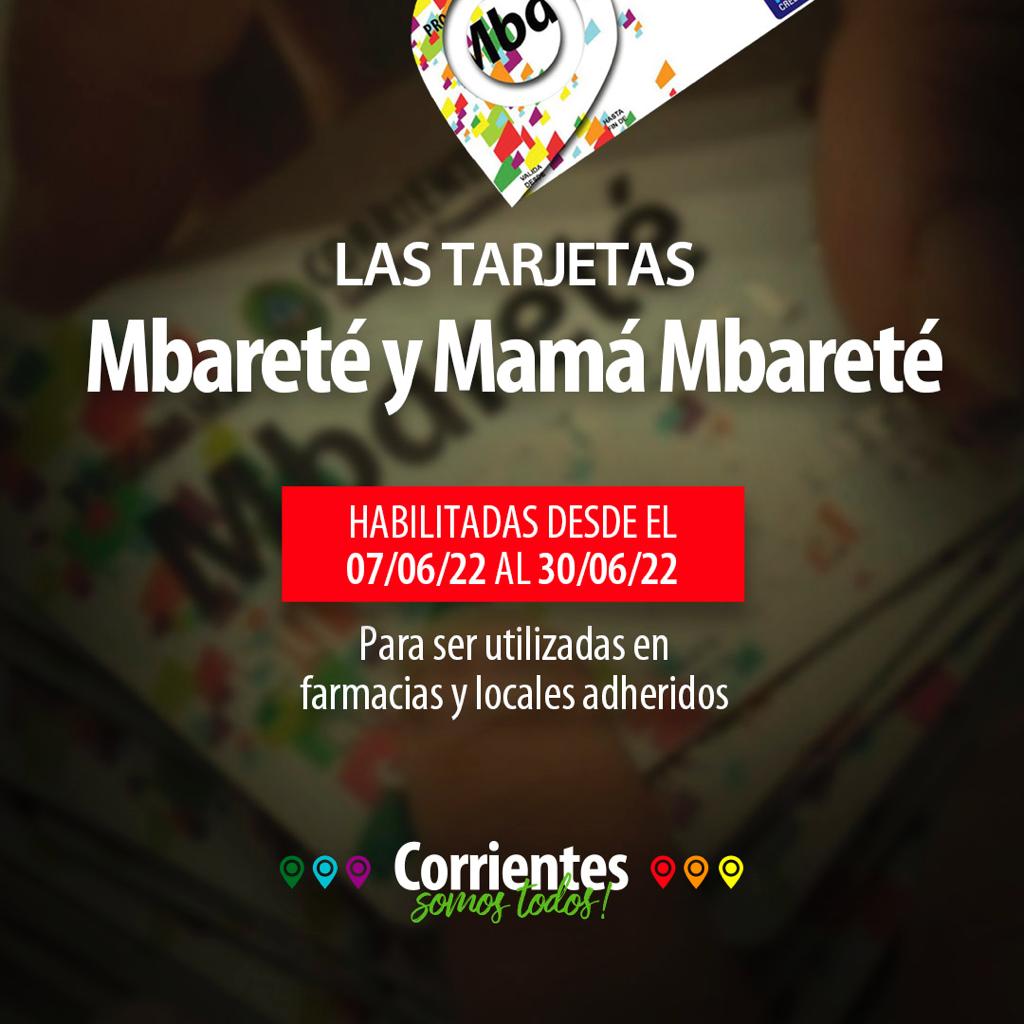 Información General | El Gobierno provincial, a través del Ministerio de Salud Pública comunica que las tarjetas Mbareté y Mamá Mbareté se encuentran habilitadas desde el día de la fecha 07 de junio hasta el 30 de junio del 2022 inclusive, para ser utilizadas por los beneficiarios de las mismas.