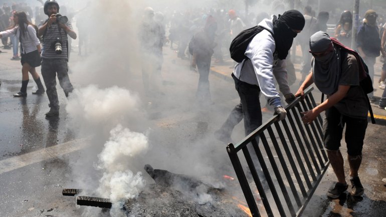 Internacionales | Un grupo de encapuchados se enfrentó con carabineros y causó graves desórdenes en Santiago. 14 efectivos policiales terminaron heridos. Al menos 50 detenidos y 14 policías heridos fue el saldo de la marcha de los estudiantes que este jueves volvieron a salir a las calles de Santiago a manifestarse por una educación gratuita y de calidad, a falta de un mes para las elecciones presidenciales en Chile, informaron a EFE las autoridades. La información fue entregada por el intendente de la región metropolitana de Santiago, Juan Antonio Peribonio, quien agregó que este viernes decidirán si toman alguna acción judicial contra los detenidos.