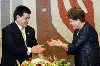 Internacionales | El regreso de Paraguay al Mercosur ocupó un lugar preponderante en la agenda que trataron los presidentes en una reunión en Brasilia, quienes también privilegiaron los avances en integración bilateral de infraestructura y de migración. Horacio Cartes, quien cumplió una visita de un día a Brasilia, fue recibido por Rousseff en el Palacio del Planalto, donde junto a varios ministros discutieron cuestiones de comercio bilateral y cooperación social, económica y de infraestructura, además del regreso de Paraguay al Mercosur, reportaron las agencias de noticias ABR, ANSA, DPA y EFE.