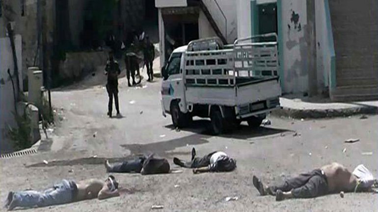 Internacionales | Los soldados dispararon a "corta distancia" a pobladores de Al Bayda y Baniya, de origen sunita. También quemaron los cuerpos y saqueraron sus casas", confirmó la organización Human Rights Watch. Las fuerzas de Al Assad permanecen en la plaza principal de la localidad de Al Bayda el 02 de mayo 2013, donde los habitantes fueron reunidos y ejecutados a quemarropa. Las fuerzas de Al Assad permanecen en la plaza principal de la localidad de Al Bayda el 02 de mayo 2013, donde los habitantes fueron reunidos y ejecutados a quemarropa.