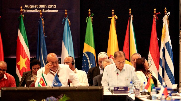 Internacionales | Además, la crisis entre Bolivia y Brasil y el retorno de Paraguay. Todas estas cuestiones dejaron fuera de foco los acuerdos regionales. Los líderes de Unasur iniciaron, este viernes, en Surinam, una cumbre agitada por un inminente ataque militar de Estados Unidos a Siria y con la embarazosa detención, a pedido de Washington, del hijo del presidente anfitrión como telón de fondo. La cita se inició con la entrega de la presidencia temporal de Unasur por parte del presidente peruano, Ollanta Humala, al mandatario de Surinam, Desi Bouterse, envuelto en el escándalo del arresto de su hijo Dino Bouterse en Panamá, según la prensa local, por tráfico de armas.