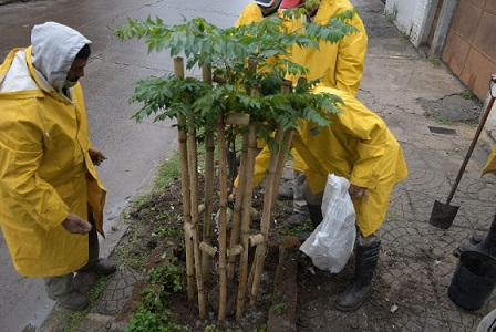 Información General | En el marco del Plan de Arbolado Urbano, personal de la Secretaría de Ambiente y Desarrollo Sustentable colocó especies de Paraíso Japonés y Pata de Buey en toda la extensión de la calle Vélez Sarsfield, entre las avenidas Pedro Ferré y Gobernador Pujol. Además, se concientizó a los vecinos para el cuidado y riego de los árboles.