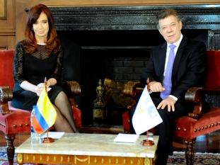 Internacionales | Cristina Kirchner y su par colombiano anunciaron un tratado bilateral para la extradición de delincuentes. La mandataria celebró el proceso de paz con la guerrilla. La jefa de Estado fue recibida por Santos en el Palacio de Nariño, sede del Poder Ejecutivo del país caribeño, donde se realizó un encuentro del que participaron funcionarios de ambos países. En la reunión se rubricaron acuerdos de cooperación en distinas áreas, como la tecnología, el deporte, la industria, entre otros.