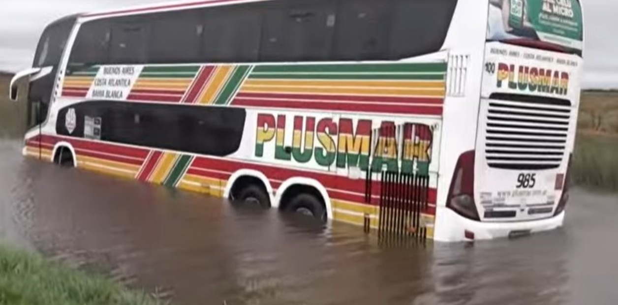 Información General | Unos 40 pasajeros fueron rescatados en lancha en una zona que quedó totalmente anegada. Fue entre Carlos Casares y Pehuajó. El micro de larga distancia se dirigía hacia la localidad de América.