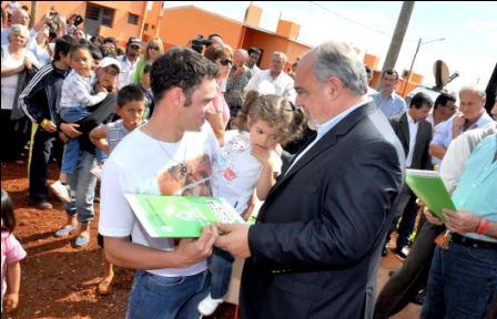 Interior | En la fecha, Ricardo Colombi hizo entrega de 50 viviendas en el popular barrio Doctor Alfonsín de la ciudad de Gobernador Virasoro, dónde también anunció la finalización de la escuela primaria de la zona y la construcción de un polideportivo. Por otra parte, adelantó que el año que viene se terminará de construir el Hospital zonal.