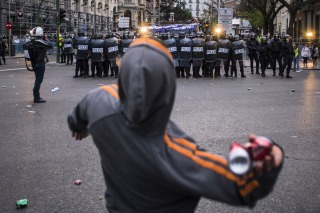 Internacionales | Disolvió por la fuerza a unos dos mil manifestantes que se habían congregado frente al Congreso de los Diputados, convocados por indignados que reclamaban la renuncia del gobierno de Mariano Rajoy.Con disparos al aire de balas de fogueo, cientos de agentes antidisturbios avanzaron sobre los manifestantes que llevaban más de dos horas realizando una protesta pacífica frente a la Cámara baja, y quienes respondieron arrojando botellas y palos en su huida en desbandada.“Ustedes tienen trabajo, nosotros no”, coreaban los ciudadanos allí concentrados dirigiéndose a la policía el mismo día en que España recibió la noticia de que el desempleo escaló en el último trimestre hasta los 6,2 millones de personas, el 27% de la población activa.La protesta tuvo lugar en un momento en el que la tensión social está creciendo en respuesta a las medidas neoliberales y antisociales del Ejecutivo de Rajoy, del derechista Partido Popular (PP), que mañana tiene previsto aprobar nuevos recortes.