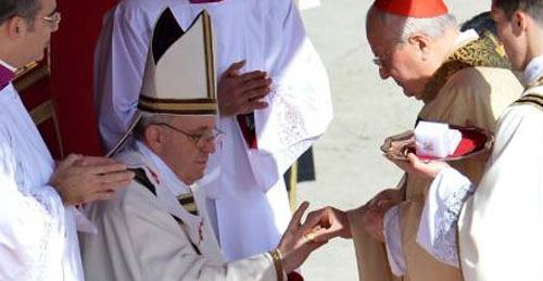 Internacionales | El papa Francisco recibió el anillo del pescador y el palio, en una ceremonia que se realiza en la Plaza San Pedro, donde quedará ungido como nuevo sumo pontífice.
