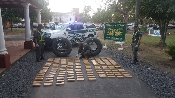 Policiales | Personal de Gendarmería Nacional detectó el estupefaciente en un camión proveniente de la República del Paraguay con destino final la República de Chile. El excesivo peso de los neumáticos alertó a los gendarmes. El conductor quedó detenido.