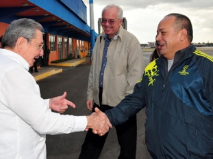 Internacionales | El presidente de Cuba se reunió con Nicolás Maduro y Diosdado Cabello, aunque no se dieron detalles de la conversación. El mandatario Hugo Chávez sigue internado por el cáncer. Castro recibió a las cuatro figuras máximas del chavismo -el vicepresidente Nicolás Maduro; el presidente de la Asamblea Nacional, Diosdado Cabello; el presidente de PDVSA, Rafael Ramírez; y la procuradora general, Cilia Flores- este sábado en La Habana, según un comunicado oficial.El mandatario cubano conversó con ellos en el salón de protocolo del aeropuerto José Martí, donde Castro despidió la tarde del sábado a los presidentes Cristina Kirchner, de Argentina, y Ollanta Humala, de Perú.Maduro, a quien Chávez delegó tareas económicas y designó como heredero político antes de someterse a su cuarta cirugía de cáncer en La Habana el 11 de diciembre, llegó a Cuba la tarde del viernes y sostuvo conversaciones, por separado, con Castro y Kirchner.