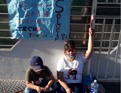 Información General | Una mujer, junto a su pequeño hijo, se encadenó esta mañana a la puerta de acceso de las oficinas del Instituto de Vivienda de Corrientes (Invico) en reclamo a un techo para su familia. Comentó que desde hace 17 años espera que le otorguen una vivienda y no logra una respuesta a su reclamo.