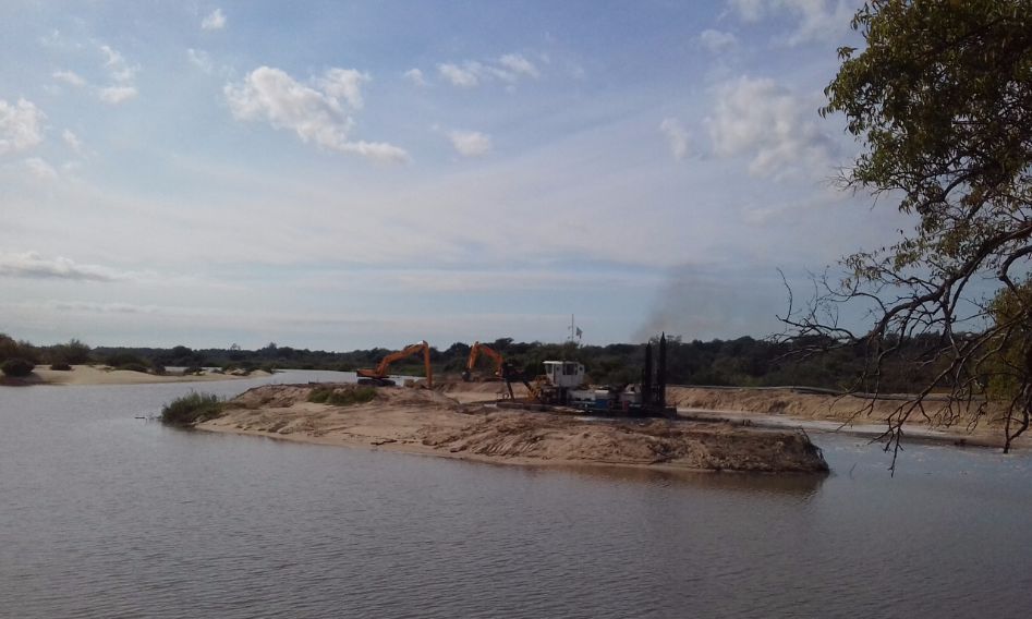 Política | Un embanque de arena aguas arriba al puente del arroyo Riachuelo y Ruta Nacional Nº 12 fue removido con los trabajos de la obra de dragado que lleva adelante el Instituto Correntino del Agua y del Ambiente (ICAA) , que permite reducir el impacto del agua sobre la zona costera que presentaba erosiones sobre el margen derecho. Las tareas permitirán el escurrimiento de las aguas en la zona de influencia, la cual ha sido afectada fuertemente en el mes de abril y mayo debido a las copiosas lluvias.