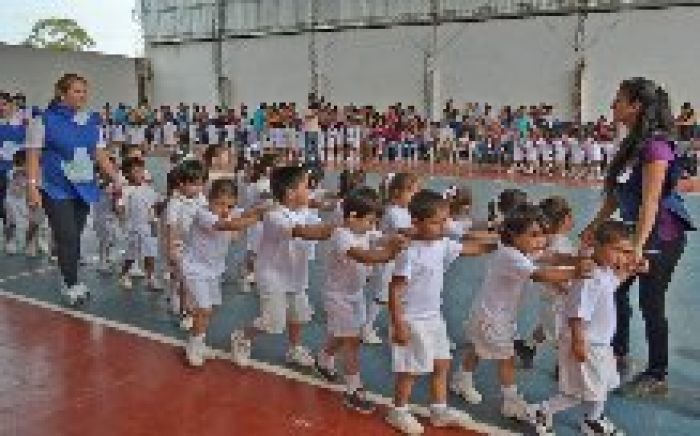 Interior | Los niños que concurren a los cinco jardines maternales que dependen de la Municipalidad de Paso de los Libres protagonizaron la fiesta por el Día de la Educación Física, en el Centro Deportivo Municipal “Barrio 508”, ubicado en el barrio “Simeón Payba”.