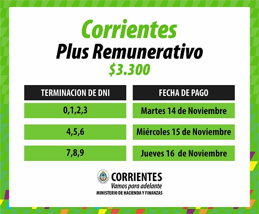 Política | “El cronograma del plus remunerativo de $3.300 comenzará el martes 14, cuando perciban los 75 mil agentes de la administración pública provincial, activos y pasivos –incluidos los jubilados municipales, con Documentos Nacional de Identidad terminados en 0, 1, 2 y 3; continuará el miércoles 15, para los números 4, 5 y 6; el pago finalizará el jueves 16 próximo”, adelantó el ministro Enrique Vaz Torres.