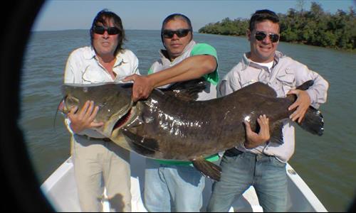 Interior | Un gigantesco ejemplar de 90 kg. de peso fue capturado por pescadores deportivos de Goya en cercanías de Yahapé. El pez luego de ser capturado y fotografiado, fue devuelto a las aguas del río Paraná para que siga su desarrollo natural.