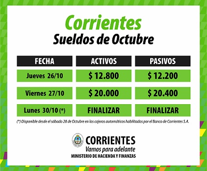 Política | “El pago comenzará este jueves, pagándose a activos hasta 12.800 pesos y a pasivos, hasta $12.200. Continuará el viernes 27, donde percibirán activos hasta $20 mil, y pasivos hasta $20.400. Finalizará el próximo lunes”, detalló el ministro Enrique Vaz Torres.