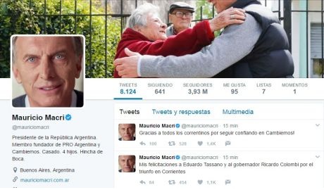 Política | Cerca de las 23, el presidente Mauricio Macri, en su cuenta de twitter (@mauriciomacri) saludó el triunfo de Eduardo Tassano en Capital.