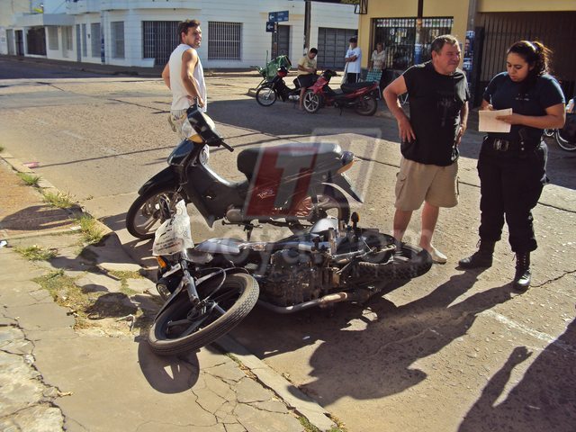 Interior | En la tarde del lunes en calle colon al 1700 dos motociclistas identificados de apellido Fernández y Vanegas, resultaron con escoriaciones varias al caer en el pavimento intentando esquivar un automóvil Peugeot 206 que salía de un garaje quien huyo del lugar, según relataron los motociclistas heridos a TNGOYA.