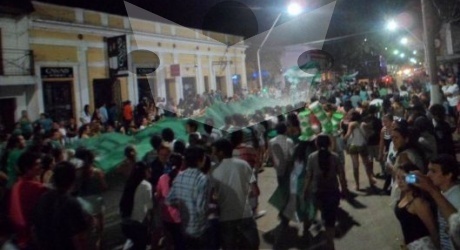 Interior | El viernes pasado una de las comparsas mayores de la localidad de Esquina, llevó a cabo un banderazo en reemplazo de las antiguas y tradicionales caravanas. Si bien el furor y la pasión no se sintieron en las calles, más de mil personas se congregaron y participaron del evento.