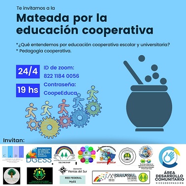 Información General | El 24 de abril a las 19 hs. se realizará una Mateada virtual por la Educación Cooperativa, organizada por el Área de Desarrollo Comunitario de la Vicegobernación.