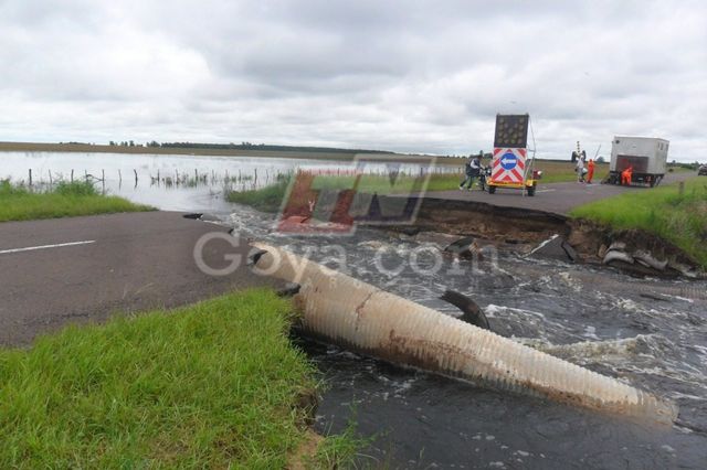 Interior | Un móvil de TNGoya.com, se traslado hasta el lugar donde el asfalto cayó a causa de las intensas lluvias. Las tuberías allí instaladas no aguantaron la fuerza del agua lo que hizo derribar parte de la ruta 12. El lugar se encuentra a unos 30 kilómetros de Goya y cortó totalmente el tránsito por la misma. Quienes deseen ir hacia Perugorría, deberán hacerlo entonces por 9 de Julio.