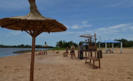 Interior | La Playa municipal, situada en la zona norte de la ciudad de Goya, frente al barrio Bartolomé Mitre está siendo acondicionada con vistas a su habilitación el domingo 23. Colocan quinchos, bancos, posaderas y otras comodidades para los bañistas.