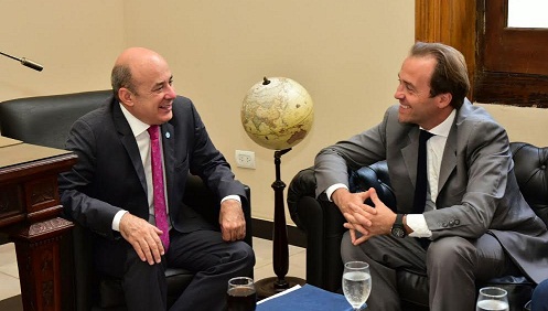 Política | En el marco de la visita del gobernador Ricardo Colombi a la República Oriental del Uruguay, en donde mantuvo un encuentro con el presidente, Tabaré Vazquez, el ministro de Producción, Jorge Vara, aprovechó la oportunidad para reunirse con el ministro de Agricultura y Ganadería de dicho país, ingeniero Tabaré Aguerre, con quien abordaron temas de importancia vinculados al Código de Aguas, la producción arrocera y de cordero pesado, entre otros.