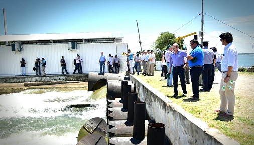 Política | La firma Adecoagro y representantes del Gobierno provincial inauguraron este lunes (30/01/17) la electrificación de una estación de bombeo para el riego de cultivo de arroz en el Paraje Yahapé, Berón de Astrada. Este avance tecnológico para la producción fue posible a una línea de alta tensión construida por la Provincia que traerá desarrollo en la zona norte de la provincia de Corrientes.