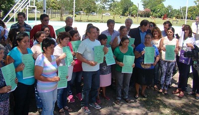 Política | El ministro de Producción, Ing. Jorge Vara, concretó hoy jueves 26 de enero la entrega de nuevos 22 títulos de propiedad a pobladores de la localidad de El Sombrero, que también así ve coronado un nuevo paso en el proceso organización y planificación urbana y social del flamante Municipio. “Cuatro años nos llevó este trabajo” remarcó el titular de la cartera productiva, y trajo a colación la importancia que tuvo en este proceso la modificación de la Ley de Regularización Dominial, a través de la cual hoy se podría concretar en un período de menos de un año.